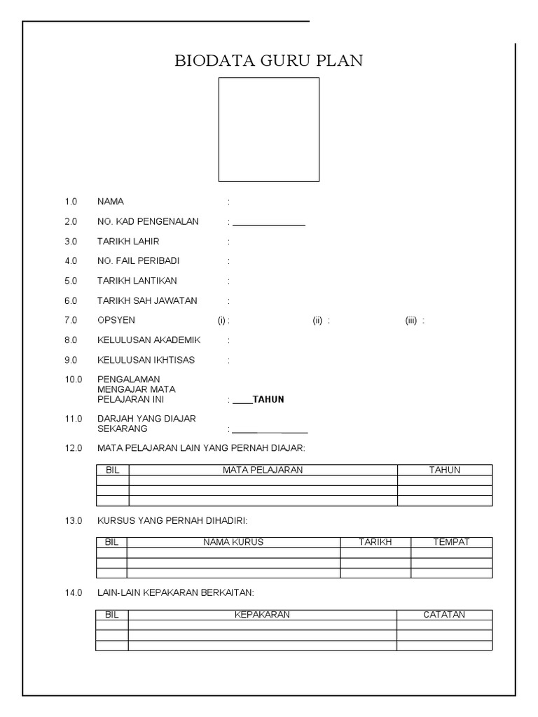 Contoh Borang Biodata Guru Untuk Fail Panitia Pdf